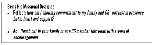 And CG begins to feel like just another task, not a true place of belonging. CG is not about filling time. It’s about building lives—lives anchored in Christ and intertwined with each other. Commitment is not just about showing up with our bodies. It’s about showing up with our hearts. It’s about saying, “I am here, not just for myself, but for you too.”