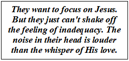 Perhaps they try not to think about what they missed. They want to focus on Jesus. But they just can't shake off the feeling of inadequacy. The noise in their head is louder than the whisper of His love.