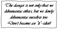 We never hear the word “functionship.” Why? Because function is mechanical. It is transactional. It works only when there is a careful balance of input and output, give and take. A machine runs well when every part performs its assigned role. But human beings are not machines. When we reduce life to pure function, people slowly become “its.” An “it” is something to be used. An “it” can be replaced. An “it” does not need affection, patience, or grace. But we are not “its.” We are persons! And once we start treating people like “its,” we begin losing something deeply human within ourselves. The danger is not only that we dehumanize others, but we slowly dehumanize ourselves too. Don’t become an “it”—idiot!