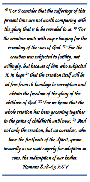 Truly only as we face death and suffering each day, does it truly make the glory of what has been made possible and real in the resurrection of Jesus so enticing! Truly we can live in the hope of resurrecting to a undefiled body in an undefiled world because of God’s grace and mercy!