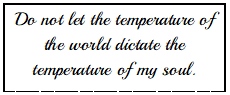 Stillness is not natural in such weather. But it is necessary. Do not let the temperature of the world dictate the temperature of my soul.